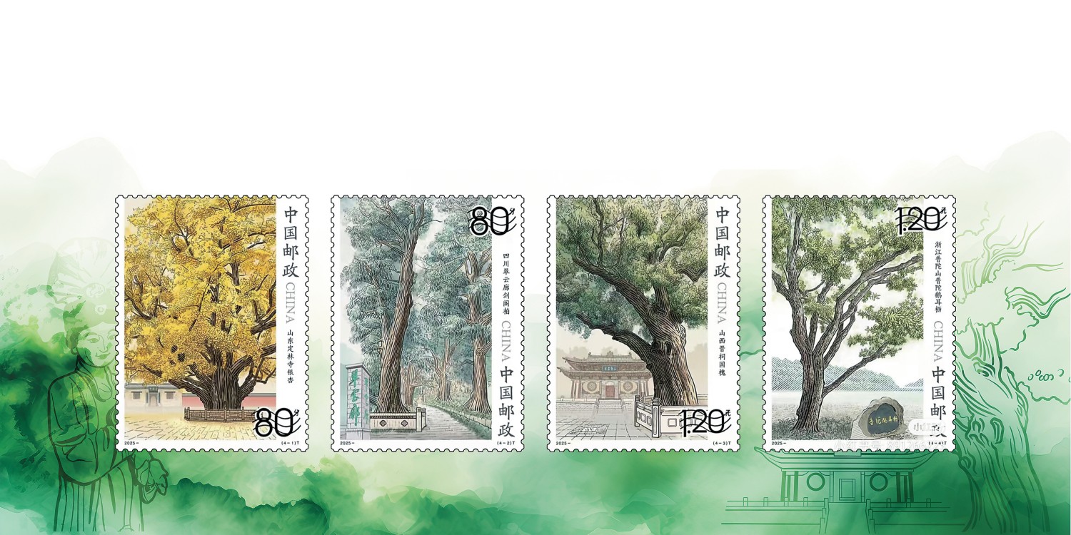 此次发行的《古树名木》特种邮票1套4枚,图案为山东定林寺银杏、四川翠云廊剑阁柏、山西晋祠国槐、浙江普陀山普陀鹅耳枥。