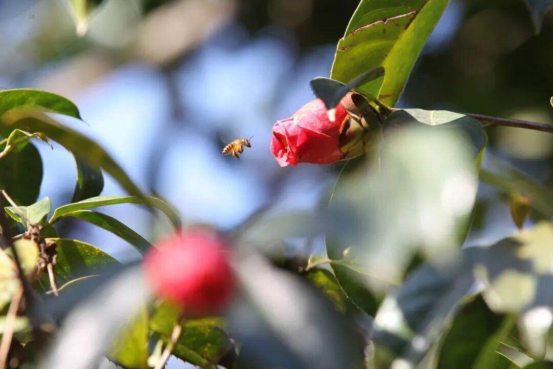 八千余亩红花油茶林盛放,连绵山岭被层层叠叠的红花缀满,宛如为冬日山野披上一袭热烈华袍,晕染成一幅鲜活的贺岁画卷。