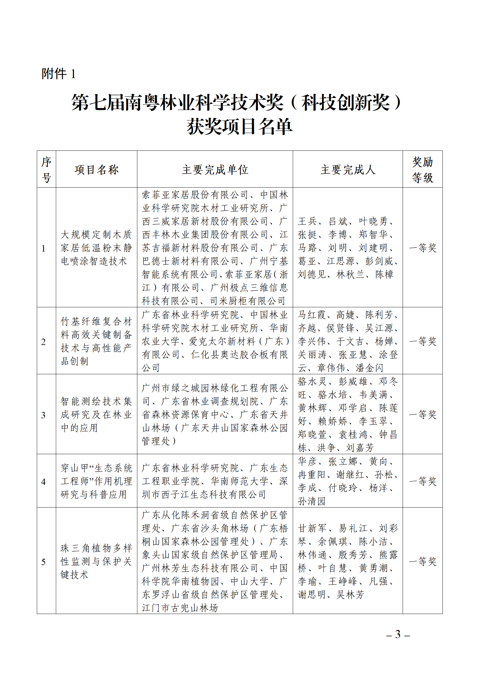 附件:1.第七届南粤林业科学技术奖(科技创新奖)获奖项目名单