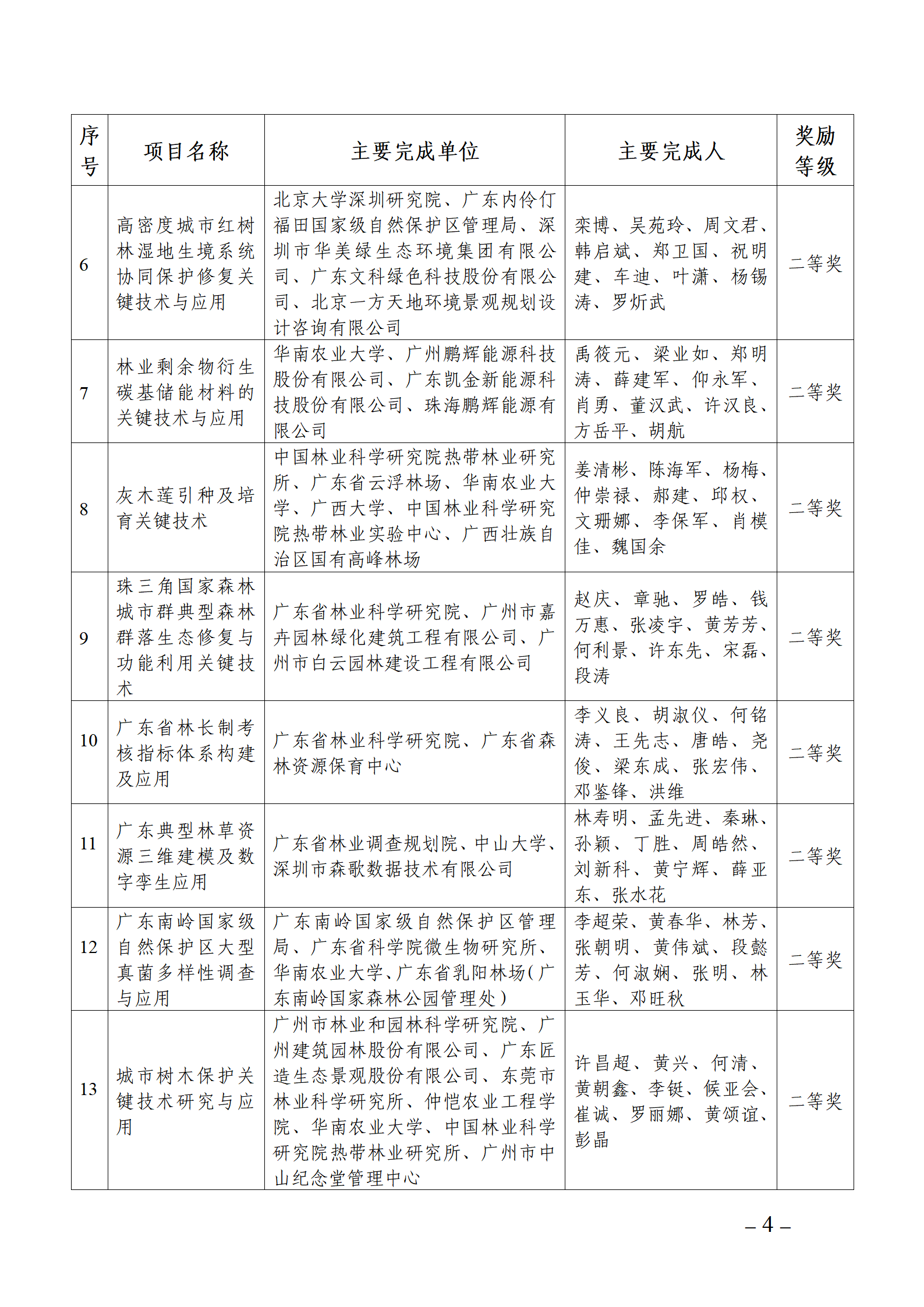 希望获奖单位和个人珍惜荣誉、再接再厉,在林业科学研究、成果转化应用、科学技术普及等领域锐意进取,再创佳绩!希望广大林业科技工作者向获奖者学习,发扬求真务实、顽强拼搏、勇于创新的科学精神,努力创造更多的科技成果,不断提升我省林业科技创新能力和林业科普工作水平,更好地服务绿美广东生态建设和林业高质量发展。
