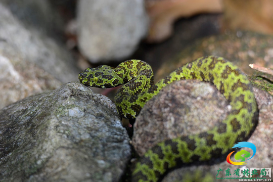 莽山原矛头蝮,属有毒蛇种,仅分布于湖南莽山和广东南岭,是国宝级的珍稀动物,在《IUCN红色名录》中列为濒危(EN)物种,在《中国生物多样性红色名录》中列为极危(CR)物种。(央广网发 杨昌腾 摄)